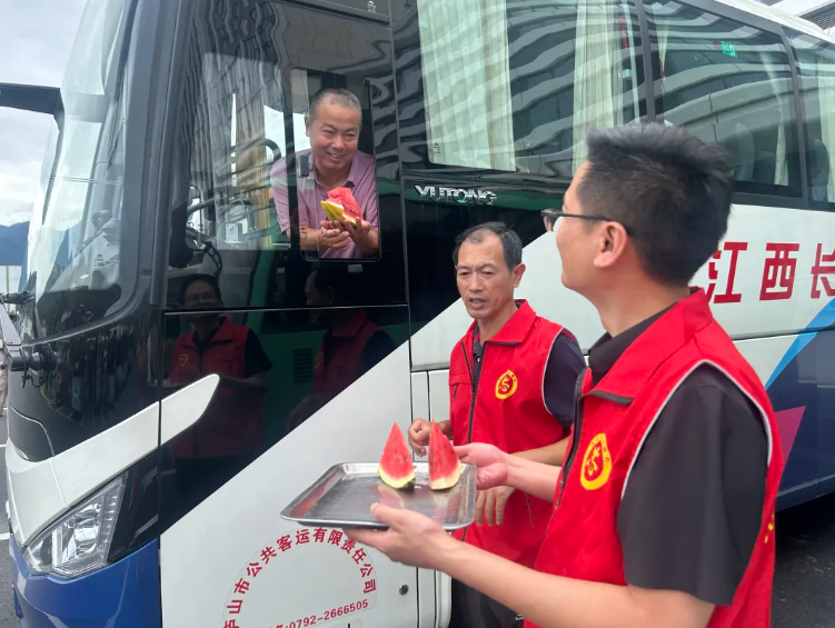 九江長運(yùn)7月22日下午,驕陽似火,熱浪襲人。在廬山市汽車站,九江長運(yùn)星子公司組織的“夏日送清涼”活動(dòng)為堅(jiān)守